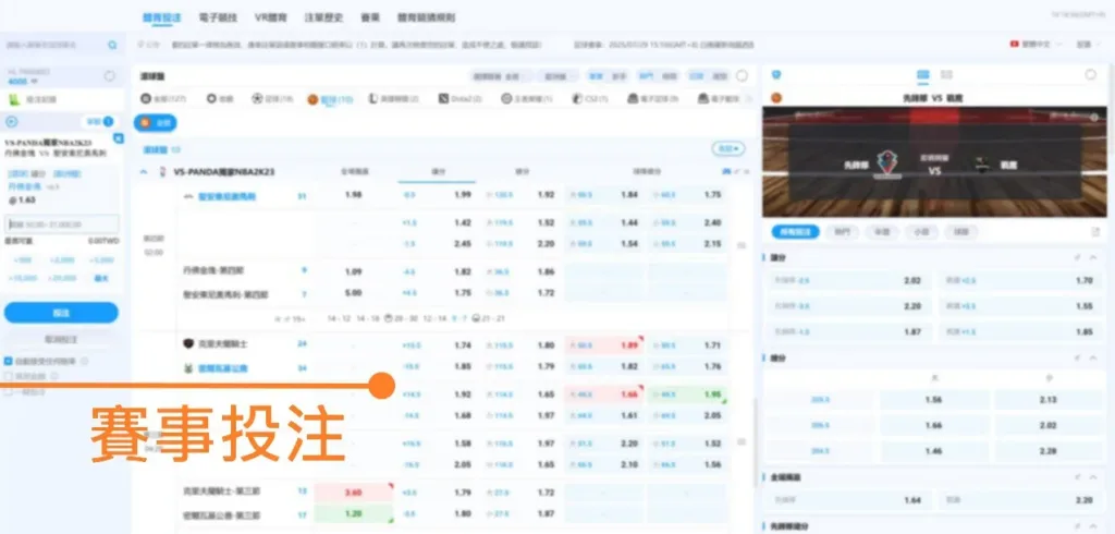 您可以對賽局進行下注,如輸贏、大小、單雙等等,選擇完畢後可於左側輸入金額進行投注。