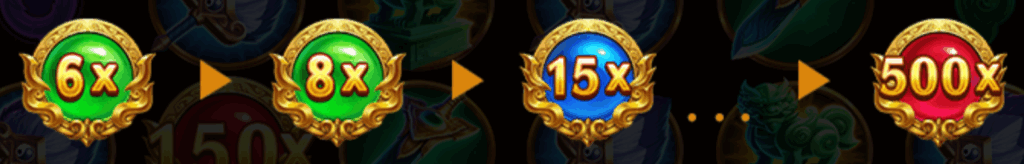 倍數符號會隨機出現在遊戲中,每當圖案連續消除時,盤面上出現的特殊倍數球將會持續升級,最高可累積至 X500 倍。倍數與連消疊加後,將大幅推升整體爆發潛力與總獎勵上限。